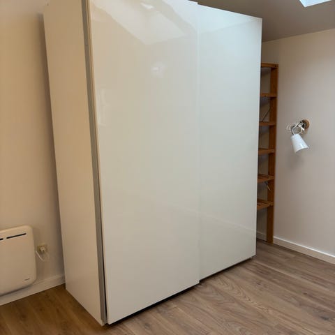 Hver låge er 230 x 49,5 cm. Farve: Hvid, men let falmet på forsiden, ellers uden ridser og i meget fin stand. Sælges enkeltvis til 200,- stk., parvis til 350,- eller alle 4 låger for 600,-. Skal afhentes i Roskilde.