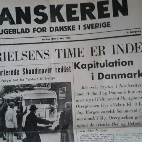 9 aviser Danskeren fra 2. verdenskrig. Tidsskrift til danskere i Sverige under krigen, Fra 1945. Alle 9 aviser for 180,.