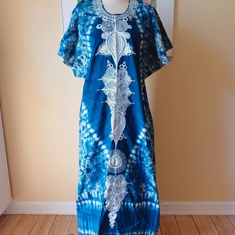 Lang blå kjole med broderi