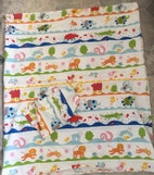 1 sæt dyne/pudebetræk. Hvid med mange forsk. dyr 125x105 cm.