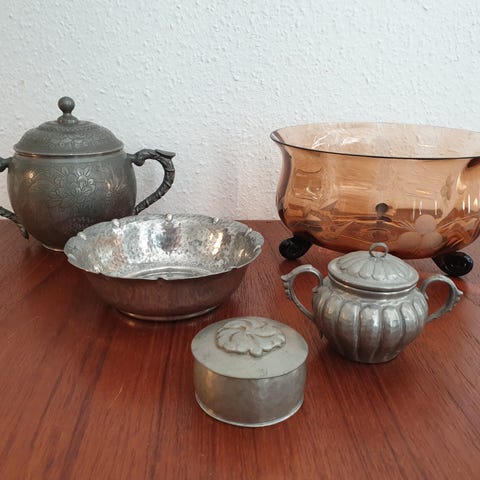 Står særlig til baderummet til vatrondeller, smykker eller hårklemmer, eller i Entéen på komoden til nøglerne.
