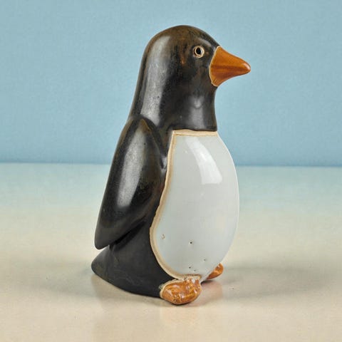 Pingvinen er i super flot stand for sine ca. 50 år, men har desværre haft en reparation på næbet - han har sikkert været oppe at slås med en konkurrent p.g.a. kærlighed.
