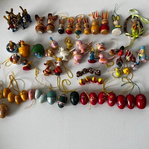 Påskepynt, Retro påskepynt i ler, flamingo, træ m.m.