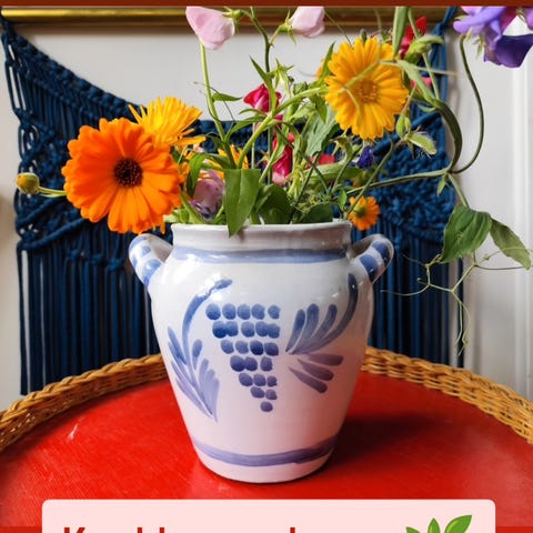 Smuk porcelænskrukke med frugt og druer inrelief