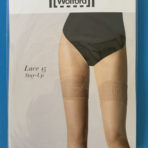 Wolford stay-up i farven cosmetic, størrelse M, i kvalitet 15 den, typen Lace 15, helt ny og ubrugt
