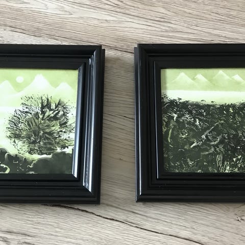 Porcelænsmaleri i ramme str. 21,5 cm vandret og str. 21,5 cm lodret