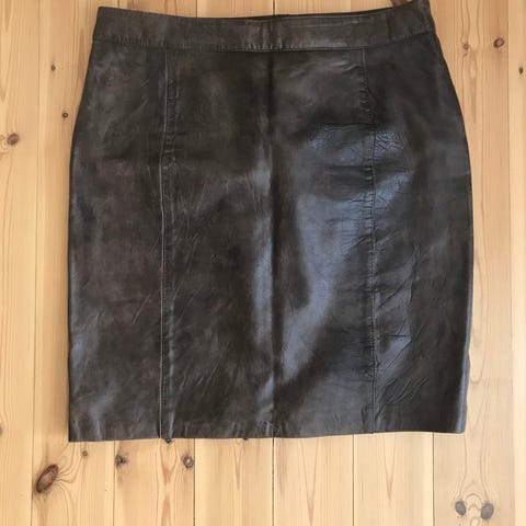 str. 40, Ukendt, Mørkebrun, Lammeskind, Næsten som ny, Elegant mørkebrun nederdel i det blødeste lammeskind. Kun brugt en gang. Nypris kr 1.800. Længde 50 cm