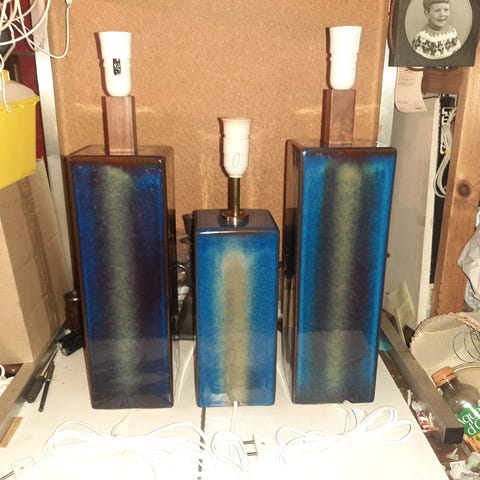 2 flotte og store Søholm lamper med ens hvide hessian-skærme. Perfekt stand - renoveret med udskiftning af fatning og ledning. Samlet pris for parret er 6.500 kr.