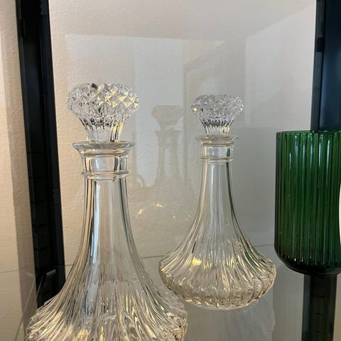 Stor krystal karafler, med slibninger og medfølgende prop.