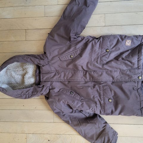 Jakke, børnejakke, str. 3-4 år/104 Lil' Atelier. Aftagelig hætte. Ingen huller eller slidmærker, men brugsspor/pletter på mave, ryg og ærme. God varm. Fra røgfrit hjem. Kan sendes med gls. Køber betaler porto. Skriv på annonce. (Caro)(B3)(25)