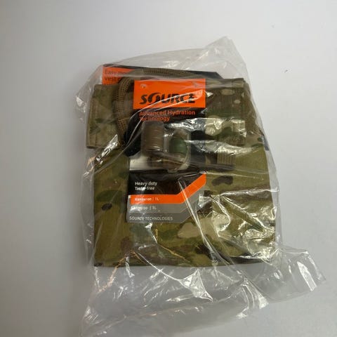 Ny og ubrugt Source Hydration Pack, en type drikkesystem i rygsæk designet til at bære vand under udendørs aktiviteter som fx vandring og cykling. Minder lidt om Camelbak.