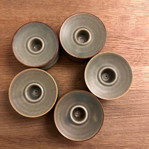 Der er et afslag på kanten af hver lysestage. Se evt. fotos.