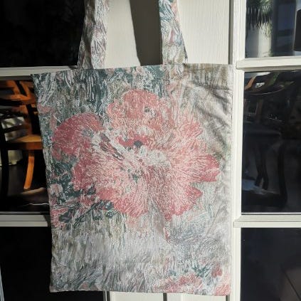 Shopper, Home Art Ny, Ubrugt lærreds taske med mange pailletter. Indvendig plastbelagt. Hanke, der kan bæres i hånden eller over skulderen. Mål på bunden af tasken 34x15cm. Taskens bredde 40cm, højde 34cm. Købt i hos Bahne 1980’erne men har aldrig fået den brugt. Fra røgfrit hjem uden husdyr. Fast pris 100kr. Jeg har mange annoncer med tasker på dba. Evt søg på: ksø tasker