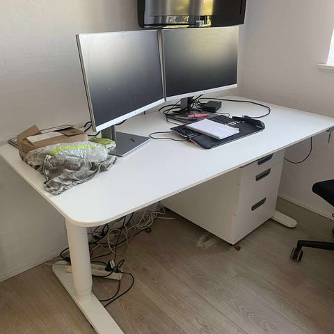 Skrivebord fra Ikea, 60x120 500kr. Kan hæves til stå højde