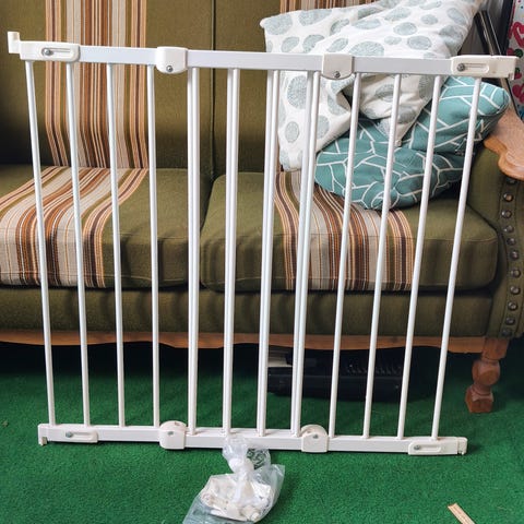 Aldrig brugt, da vores barnebarn meget hurtigt lærte at færdes sikkert på vores trappe. Brugsanvisning medfølger. Vi har ikke gemt kvitteringen, men den har kostet godt 300 kr.