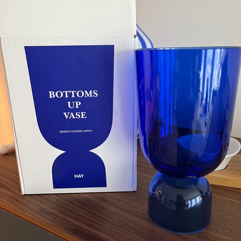 Super smuk vase i sart rosa farve. Glasvase. Kan vendes begge veje. Har målene 11.5 x 22.5 cm.
