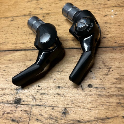 Et sæt Shimano 105 gearvælgere / gearskiftere