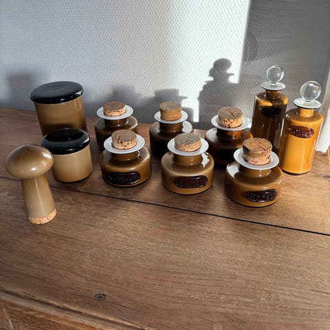Fin sæt med kande og 2 skål, alt helt og fint dog har den store skål en ridse se foto.