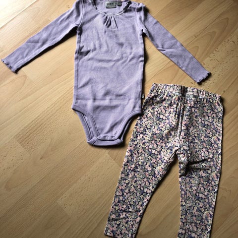 Helt nyt super flot tøjsæt fra Wheat sælges . Det er i str 80 . Det er aldrig brugt - aldrig vasket . Det består af body med flotte detaljer / leggings og hårbånd . Virkelig et flot sæt i flotte farver . Min datter fik det aldrig brugt . Det sælges for 275kr