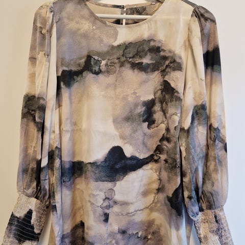 Love & Divine Love947 bluse i brun. Størrelse S. Lavet af 100% polyester. Velegnet til kvinder. Blusen har et mønster og en klassisk pasform, der er ideel til både hverdag og festlige lejligheder.
