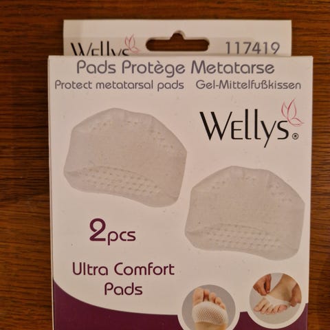 Støttepuder til at klistre i sko forrest på sålen hvis du har nedsunken forfod. F.eks. til brug i sandaler eller stiletter hvor der ikke kan bruges indlæg.