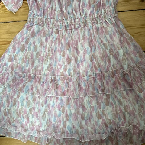 Sommerkjole, Sugarhill, str. L, Flerfarvet, Viscose, Næsten som ny, Med fastgjort underkjole, lynlås i ryggen og bindebånd.