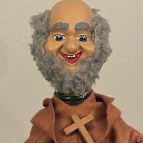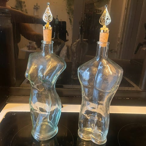Gammel svensk karaffel med inskriptionen: Flicka lilla snäll kom till mig i quäll.