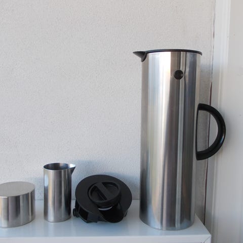 Stelton termokander til te og kaffe, vandkaraffel med isterningstopper, sukkerbeholder, sukkerdispenser, mælkekander og flødekande, Alle 10 dele sælges samlet og kommer fra ikke ryger og ikke dyrehjem.