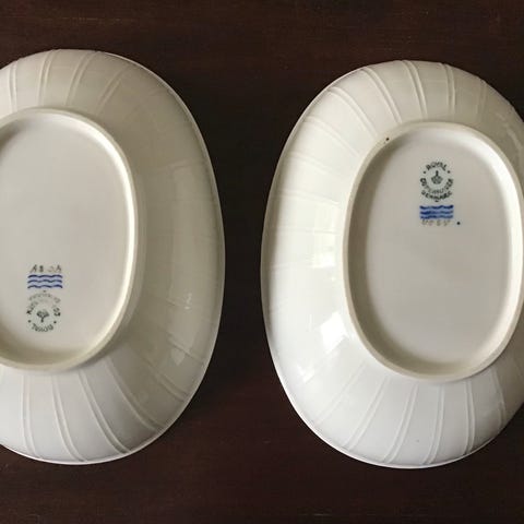 Royal Copenhagen Hvid Halvblonde 2 stk Ovalt Fad bladformet