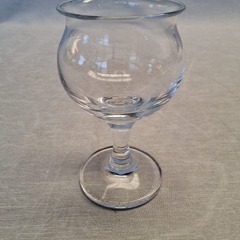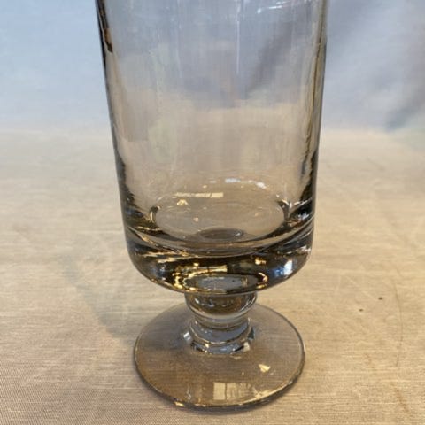 Glasset er gennemsigtigt med en skulpturel fod og indgraverede mønstre.,Afhentes i:,Røde Kors Horsens (615),Bemærk at mail, chat og beskeder ikke besvares, og varen skal købes på knappen "Gå til varen"