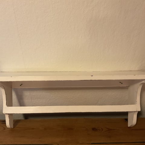 Produktet er en lang, flad hylde med en glat overflade, fremstillet af lys materiale. Den har skarpe kanter og kan bruges til forskellige formål.,Afhentes i:,Røde Kors Kolding (621),Bemærk at mail, chat og beskeder ikke besvares, og varen skal købes på knappen "Gå til varen"