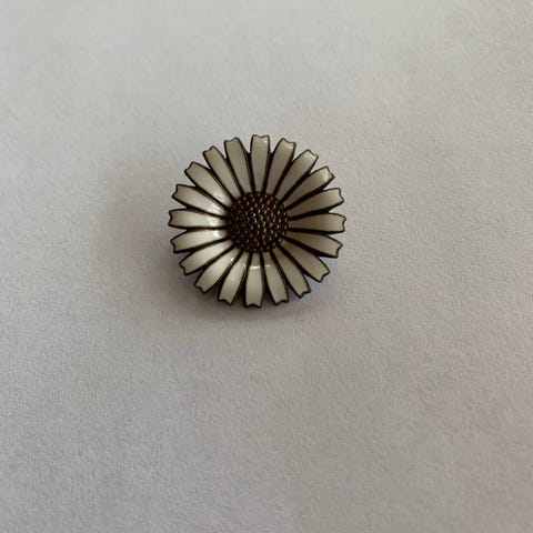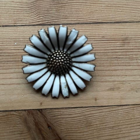 Gammel Margurit broche fra Georg Jensen. Den er lidt slidt i emaljen, derfor den lave pris.,Afhentes i:,Røde Kors Tuborgvej / København NV (101),Bemærk at mail, chat og beskeder ikke besvares, og varen skal købes på knappen "Gå til varen"