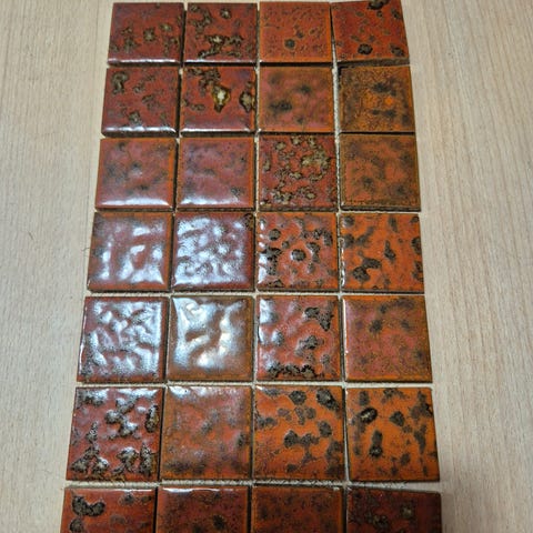 Hvide kvadratiske fliser 10×10 cm. 1 m2 og en rest vurderes til 1,5 m2 i alt . Sælges samlet.