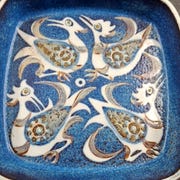 Skålen er firkantet med en glat overflade. Den er dekoreret med farverige fugle og blomster. Keramisk. Royal copenhagen model nr 144/2885. Med fuglemotiv, kvadratisk ,Bemærk at mail, chat og beskeder ikke besvares, og varen skal købes på knappen "Gå til varen"