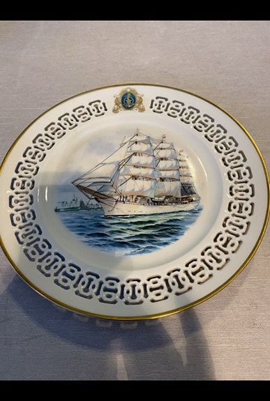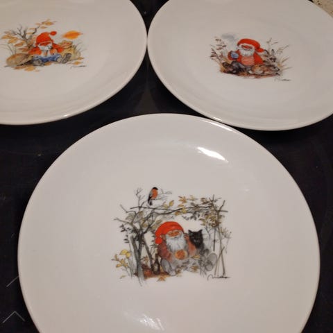 Tallerkenen er rund og har en hvid overflade med farverig dekoration af blade og bær. Den er lavet af keramik.,Afhentes i:,Røde Kors Horsens (615),Bemærk at mail, chat og beskeder ikke besvares, og varen skal købes på knappen "Gå til varen"