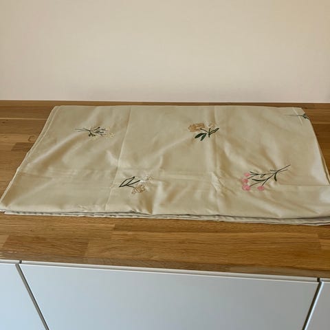 Produktet er en dug med et blødt, vævet materiale og et diskret mønster af naturlige motiver. Dugen har en fin størrelse der gør at den kan bruges til ethvert bord.,Afhentes i:,Røde Kors Aabenraa (546),Bemærk at mail, chat og beskeder ikke besvares, og varen skal købes på knappen "Gå til varen"
