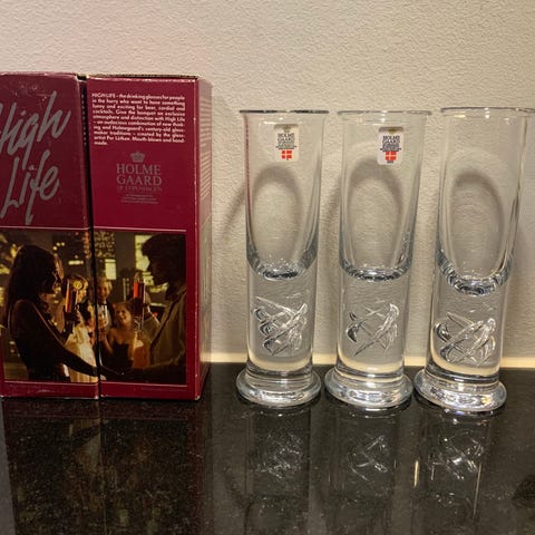 Glasset har en elegant skålform og en dekorativ fod. Det er lavet af klart glas med indgraverede stjerner.,Afhentes i:,Røde Kors Horsens (615),Bemærk at mail, chat og beskeder ikke besvares, og varen skal købes på knappen "Gå til varen"