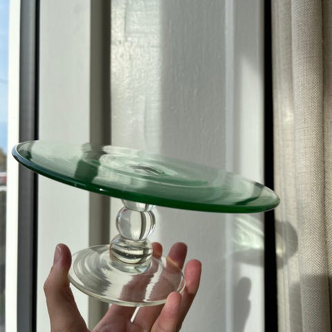 Den to-niveau kagefad er lavet af klart glas med farverige dekorative elementer. Det har en gylden håndtag.,Afhentes i:,Røde Kors Aabenraa (546),Bemærk at mail, chat og beskeder ikke besvares, og varen skal købes på knappen "Gå til varen"