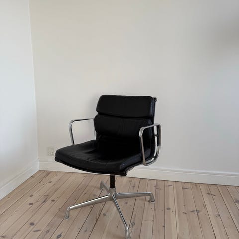 Den ikoniske Charles & Ray Eames EA-119 kontorstol i sort fuldlæder (Nero) fra Vitra. Stolen er original (kvittering haves), i rigtig flot stand med kun let patina - ser fantastisk ud.