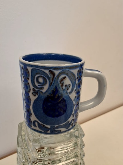 Christine sukkerskål fremstillet af Knabstrup keramik i farven grå med blå kant