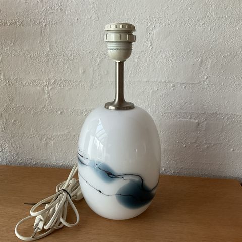 Lampen har en oval glasbase med en marmorering i lyserød.