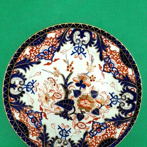 Royal Crown Derby tallerken, med mønsteret "Imari 2451" (Old Imari bone china saucer). Diameter 23 cm. Made in United Kingdom ,Afhentes i:,Røde Kors Bellinge (461),Bemærk at mail, chat og beskeder ikke besvares, og varen skal købes på knappen "Gå til varen"