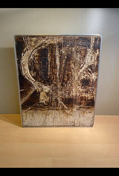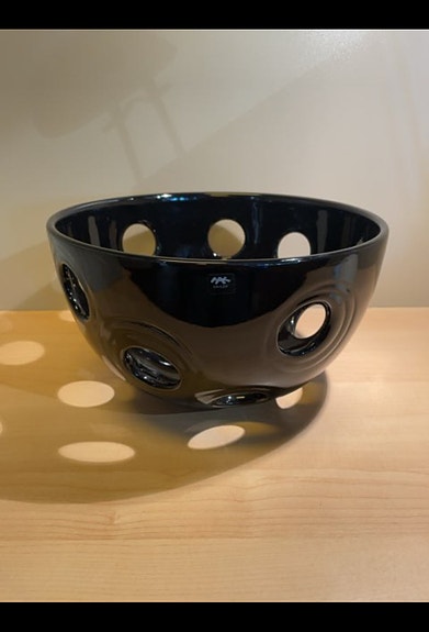 Glasskål m blomsterdekoration, metalkant og hank. Ca 18 cm i dia. Højde ca 10 cm. ,Afhentes i:,Røde Kors Sorø (335),Bemærk at mail, chat og beskeder ikke besvares, og varen skal købes på knappen "Gå til varen"