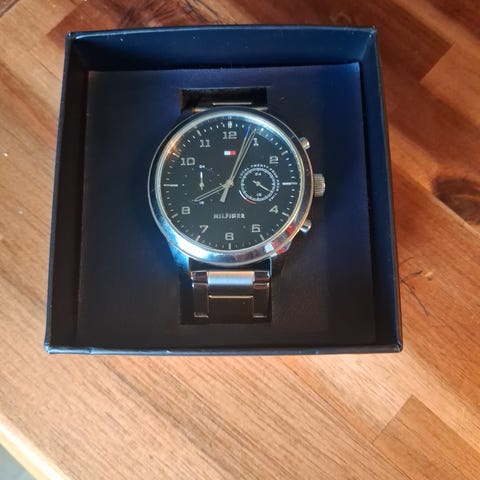 Tommy Hilfiger herreur, hvid/stål, model: TH-190-1-27-1298. I original æske med manual. Aldrig brugt. Uret har stadig original beskyttelsesfolie på undersiden og oversiden (urskiven). ,Afhentes i:,Røde Kors Bellinge (461),Bemærk at mail, chat og beskeder ikke besvares, og varen skal købes på knappen "Gå til varen"