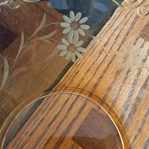 Høj vase - 23 cm - har fod og stilk i klart glas. Pris 18 kr.