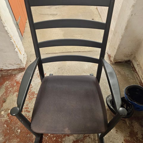 Super fin retro gyngestol i sort. Stolen har en god siddekomfort og er til salg så længe den er på nettet for 700 kr