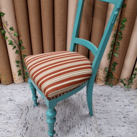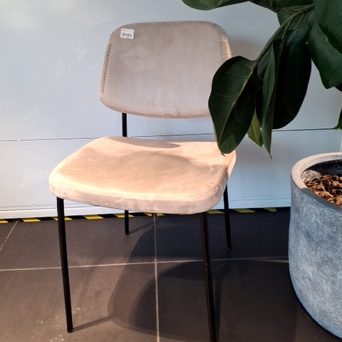 Stolen har en buet ryg i træ og en metalramme. Sædet har striber i træ.,Afhentes i:,Røde Kors Holstebro (661),Bemærk at mail, chat og beskeder ikke besvares, og varen skal købes på knappen "Gå til varen"