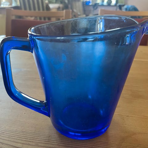 højde 9 cmFin lille glaskander i blå. Fra Holmegaard. ,Afhentes i:,Røde Kors Aabenraa (546),Bemærk at mail, chat og beskeder ikke besvares, og varen skal købes på knappen "Gå til varen"