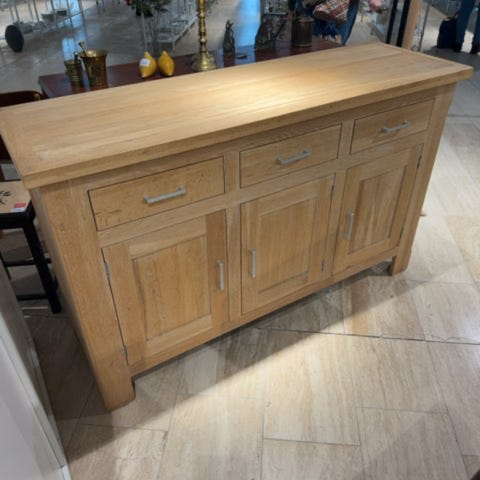 Skuffesystemet har en elegant, buet front med tre rummelige skuffer, der er lavet af massivt træ. Træet har en varm, rig farve med en naturlig åretegning. Overfladen virker poleret og glansfuld. Kommoden med chatolfunktion, øverste skuffe er en klap der kan slås ned og trækkes ud. Fremstår med brugsspor. ,Afhentes i:,Røde Kors Aabenraa (546),Bemærk at mail, chat og beskeder ikke besvares, og varen skal købes på knappen "Gå til varen"