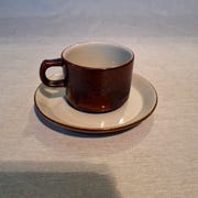 Koppen er glasurbelagt med en brunlig, strukturert overflade og en beige underkop.,Bemærk at mail, chat og beskeder ikke besvares, og varen skal købes på knappen "Gå til varen"
